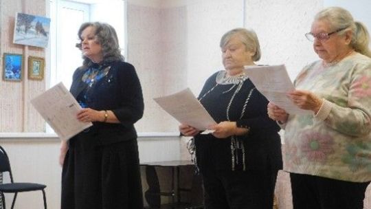Организатор и ведущая программы В.Н. Потемкина (Руководитель регионального отделения ВОД "Волонтеры Победы") и артисты Татьяна Елизарова и Нина Пятанова...